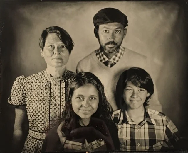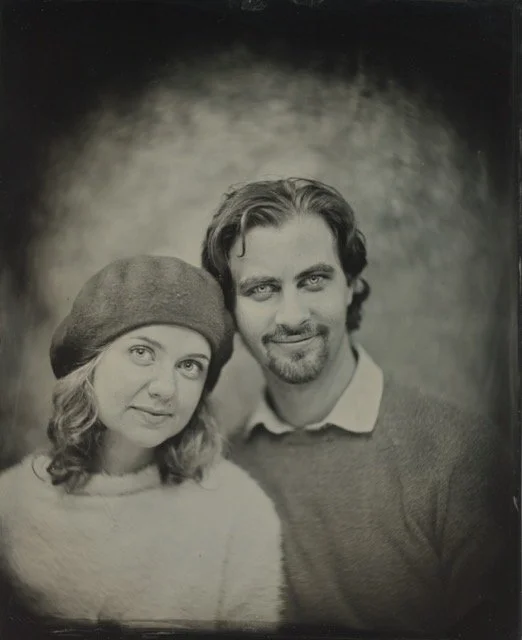 Every tintype portrait session with Daniel Leocadi starts with a personalized consultation, ensuring your vision is captured in a truly unique way. Using the traditional wet-plate collodion process, each tintype is meticulously handcrafted. The metal plate is poured and prepared in the darkroom just moments before your portrait is taken, making every tintype an exclusive work of art. After the exposure, the plate is developed immediately, unveiling a one-of-a-kind image with a rich, timeless quality.
